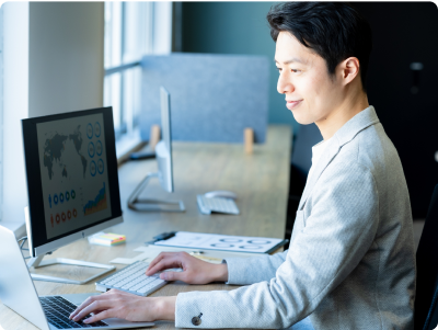 課題解決に最適なITツールやシステムを選定・導入。必要に応じてカスタマイズ開発を行い、お客様の業務にフィットした仕組みを構築します。